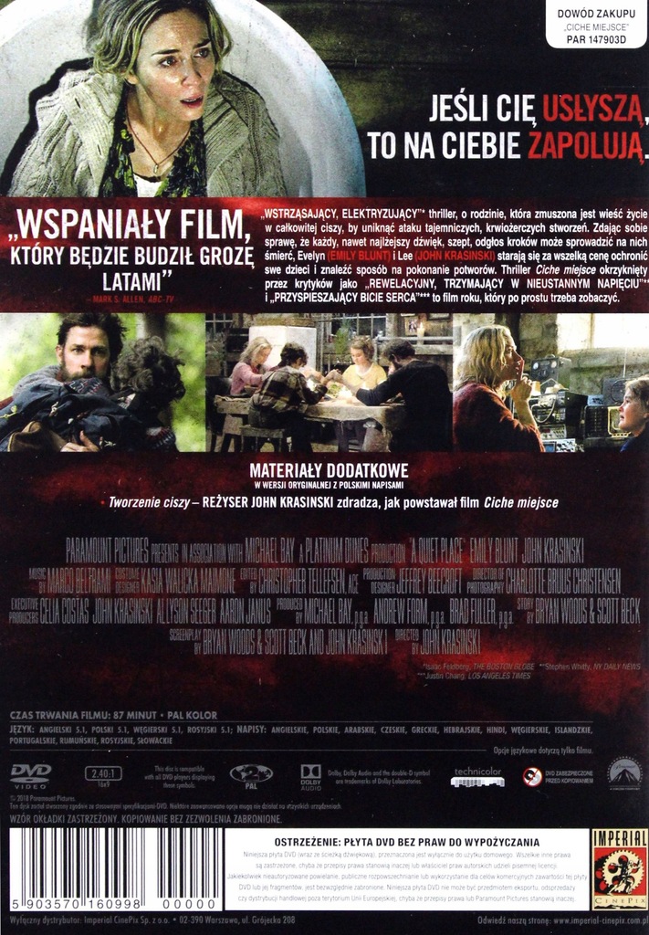 Ciche Miejsce - Ciche miejsce (A Quiet Place) - recenzja - TYLKO PREMIERY ... - Ciche miejsce 2 horror w następstwie dramatycznych wydarzeń, które miały miejsce w domu abbottów, rodzina (emily blunt, millicent simmonds, noah jupe) musi stawić czoła temu, co dzieje się poza domem, temu, jak wygląda teraz świat.. Całe ich życie, życie w ciągłym, nieprzerwanym napięciu, koncentruje się na tym, by nie wydawać i nie generować żadnych dźwięków. Odblokuj dostęp do 8767 filmów i seriali premium od oficjalnych dystrybutorów! Wypróbuj konto premium przez 14 dni za darmo! They are not selected or validated. Krasinski woli budować iluzję zachowywania milczenia, niż rzeczywiście kręcić nieme kino, na co zapewne zdecydowałby się twórca.